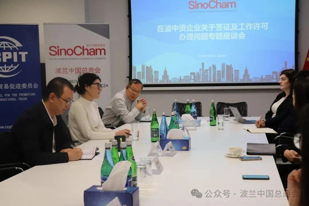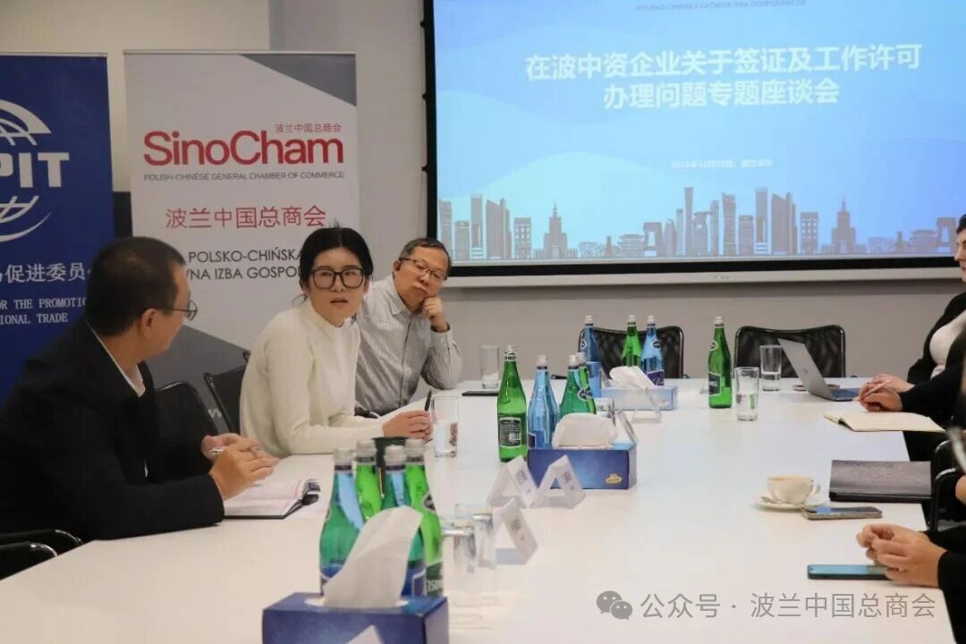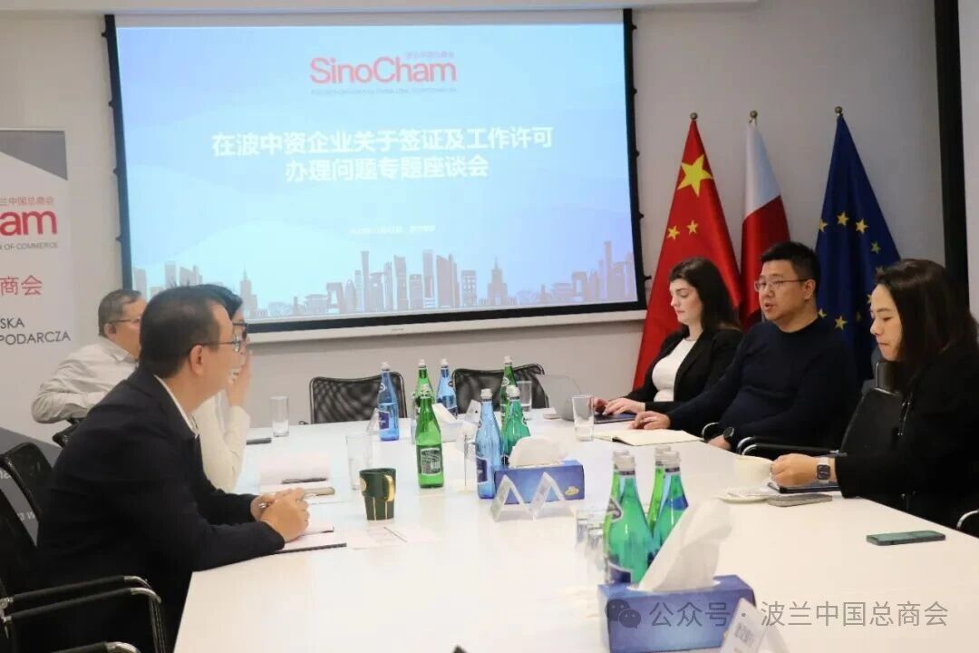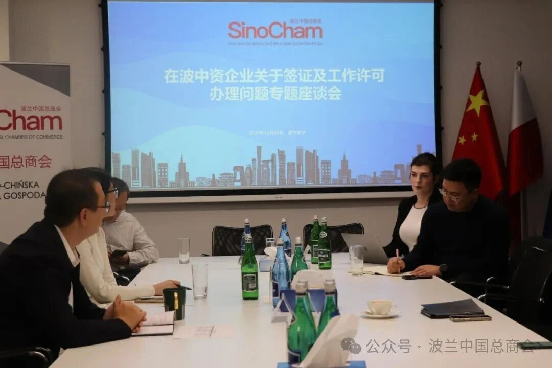 为进一步支持在波中资企业稳定发展,协助企业解决在实际经营中遇到的涉外人员签证、居留及工作许可办理难点,波兰中国总商会于2025年12月3日成功举办了“在波中资企业签证及工作许可办理问题专题座谈会”。波兰中国总商会秘书长、中国贸促会驻波兰代表处代表王巨鹏主持会议,10家会员企业代表出席会议。