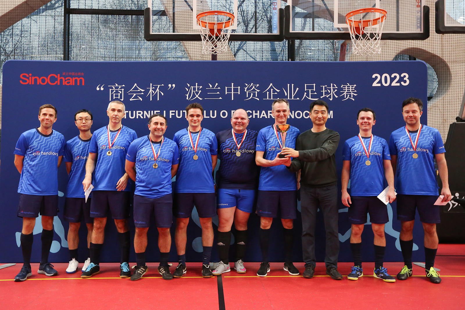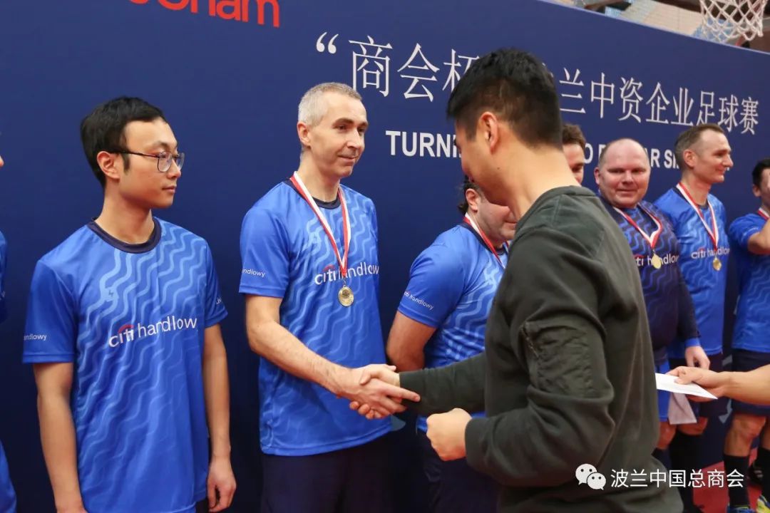 12月16日,由波兰中国总商会主办,中国工商银行波兰分行牵头组织的首届“商会杯”足球比赛成功举办。来自中国银行、工商银行、建设银行、波兰华为公司、迈瑞公司、花旗银行、光大环境等13家会员企业代表分别以单独组队或联合组队的形式参加比赛,共形成七只队伍参加角逐。比赛竞争激烈,精彩纷呈,赛出了成绩,也赛出了友谊。经过多轮角逐,花旗银行代表队获得冠军,光大环境队获得亚军,中资企业联队获得季军。