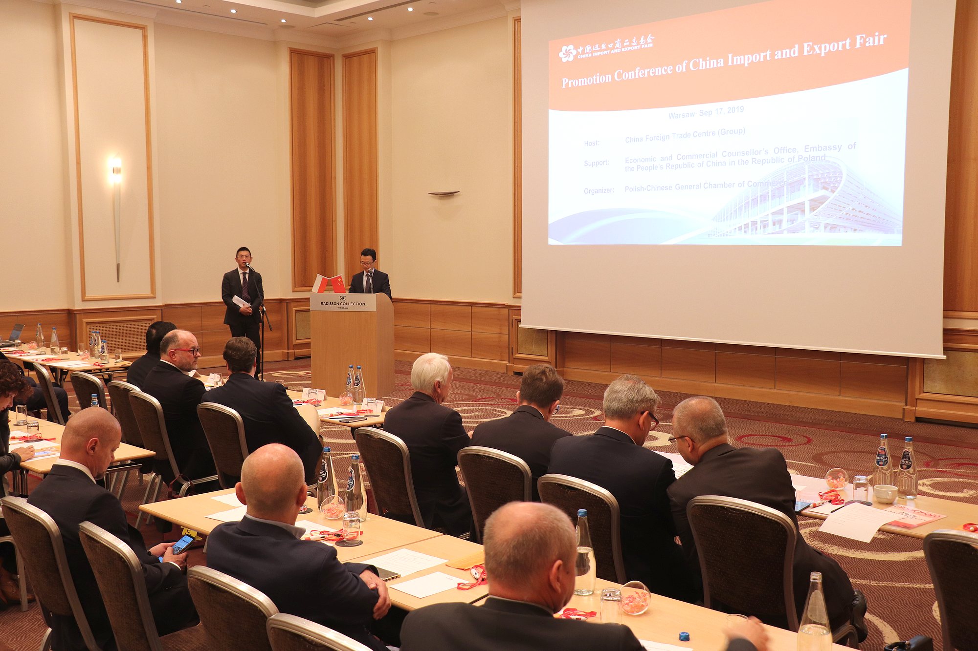 2019年9月17日,第126届中国进出口商品交易会(广交会)推介会在波兰首都华沙举行,来自波方企业的代表近50人参加了当天的推介会,此次推介会由波兰中国总商会组织筹办。波兰中国总商会秘书长郭培东主持会议,中国对外贸易中心主任李晋齐、中国驻波兰使馆经商参处参赞徐晓峰、波中商务联合会副会长亚采克·博切克以及前波兰国家发展部国际合作司司长亚当·布罗泽克发表了致辞。推介会介绍了广交会的有关情况,邀请波兰企业积极参加展会。