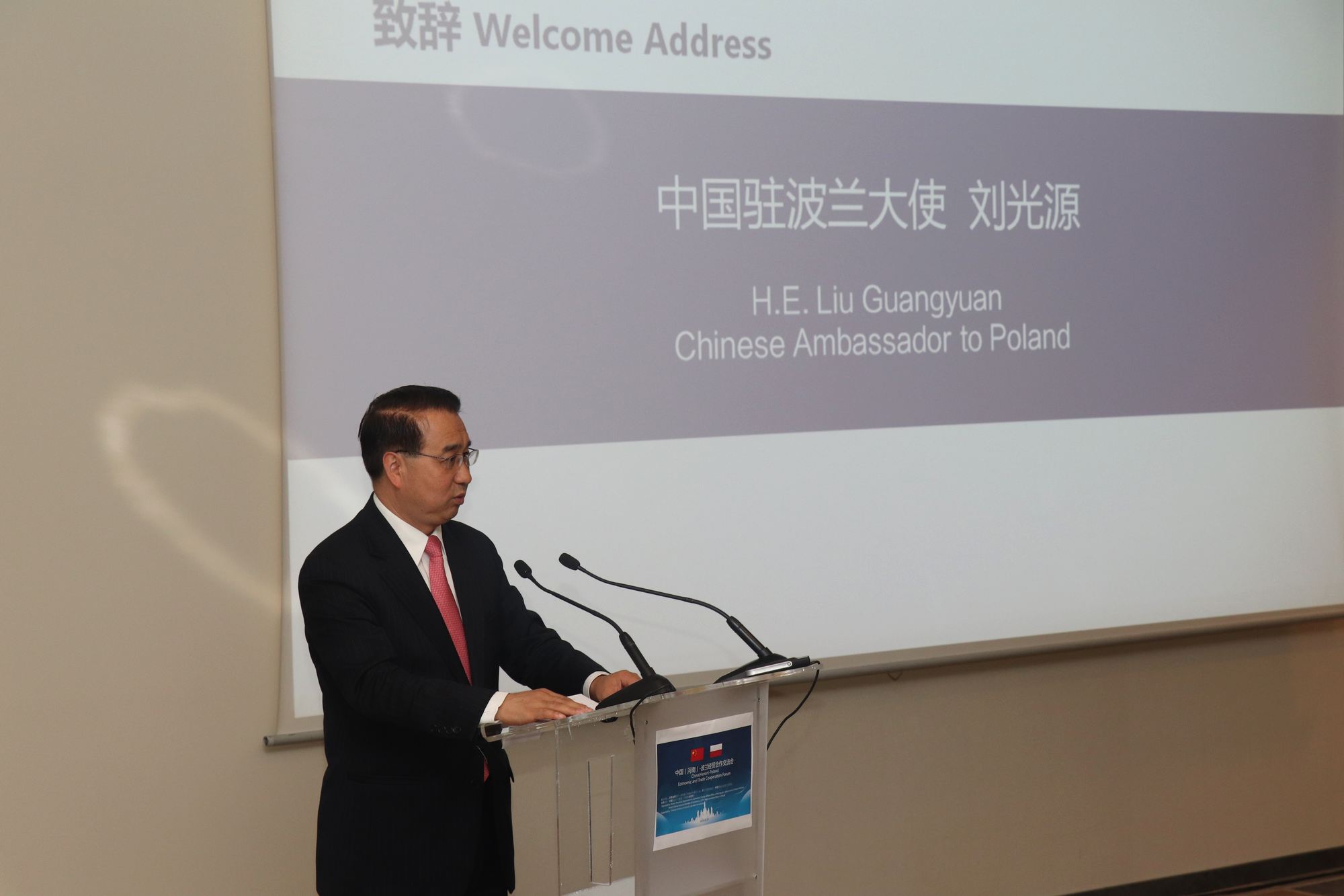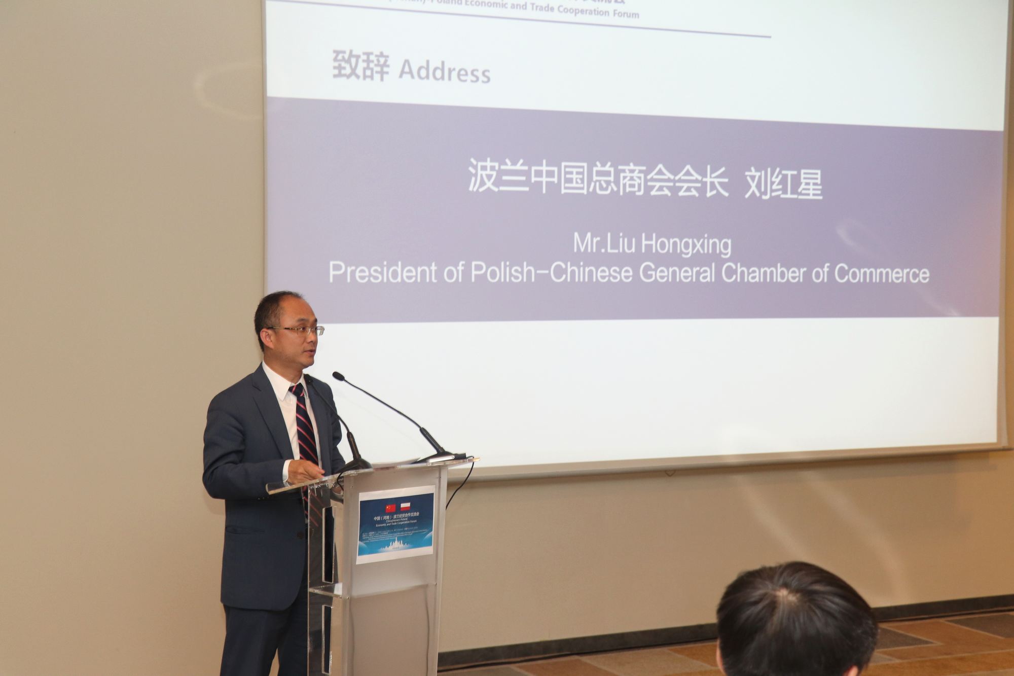 2019年5⽉20⽇,波兰中国总商会与河南省商务厅共同主办了中国(河南)-波兰经贸交流会。河南省委副书记喻红秋、中国驻波兰⼤使刘光源、波兰议会波中议员小组主席柴莱伊、卢布林省⻓斯塔维亚尔斯基和波兰中国总商会会⻓刘红星等出席并致辞,河南省政府团和经贸团以及中波政界和商界代表近百⼈参加了交流会。嘉宾致辞后举办了中波企业的对接交流会,波兰中国总商会组织了40家波兰企业与河南企业进⾏对口洽谈,为双⽅未来进⼀步的合作打下了基础。